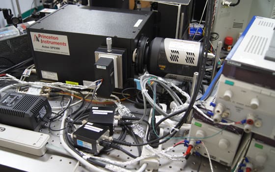 A 30 cm-length monochromator (Princeton Instruments, SP-2300i) equipped with a thermoelectrically cooled silicon CCD array detector (Princeton Instruments, PIXIS 100BR) and a photomultiplier tube (Hamamatsu Photonics, H11461). This system is used for characterizations and investigations of samples by photoemission spectral measurements, time-resolved photoemission intensity measurements, transient absorption measurements, and micro Raman scattering measurements.